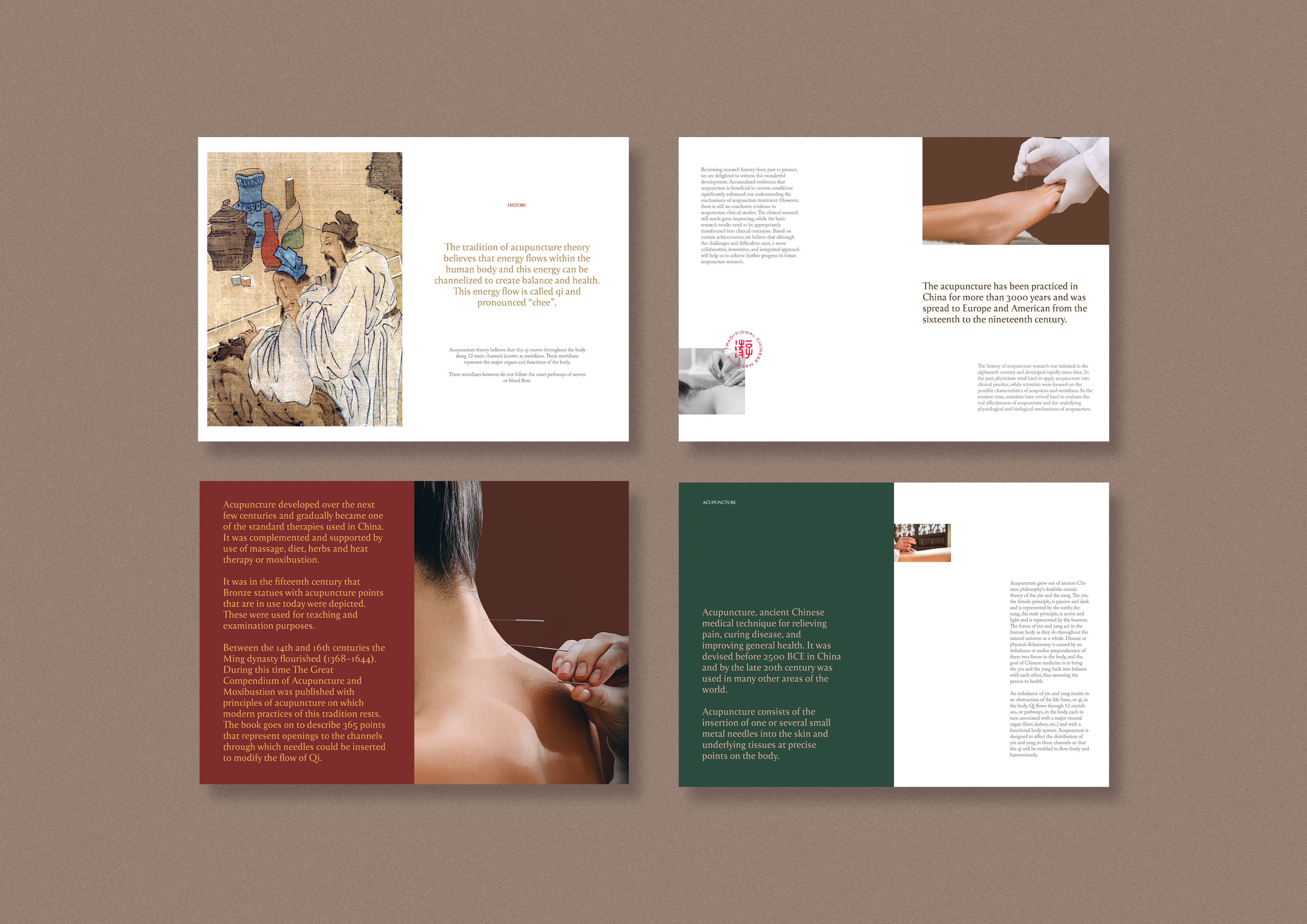 VI設計公司分享:醫療品牌形象設計。針灸是一種古老的中醫藥技術,可緩解疼痛,治愈疾病和改善整體健康狀況。起源于公元前2500年之前的中國,到20世紀后期已在世界許多其他地區使用。針灸包括將一根或幾根小金屬針在皮膚上和身體下端的精確組織中插入。
