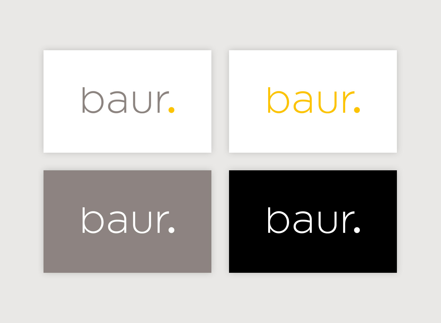 字母是根據Gotham重新設置的,并且僅使用小寫字母。的哥譚繼續的作品品牌字樣。黃色和灰色是Baur品牌多年以來的典型顏色,被保留為公司的主要顏色,而灰色則以暖色調重新定義。將來,徽標還可以以不同的顏色顯示。從新徽標衍生而來的圓形區域現在可以用作中心設計元素,無論是用作動作區域,用作圖標的主體還是用作裝飾圖形。