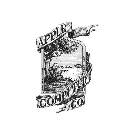 1976年蘋果成立,合伙人羅?韋恩設(shè)計(jì)首版LOGO,以牛頓坐蘋果樹下的場景,呼應(yīng)萬有引力典故,傳遞科技創(chuàng)新初心。但因細(xì)節(jié)繁復(fù)、辨識度低,僅在首批電腦短暫使用。