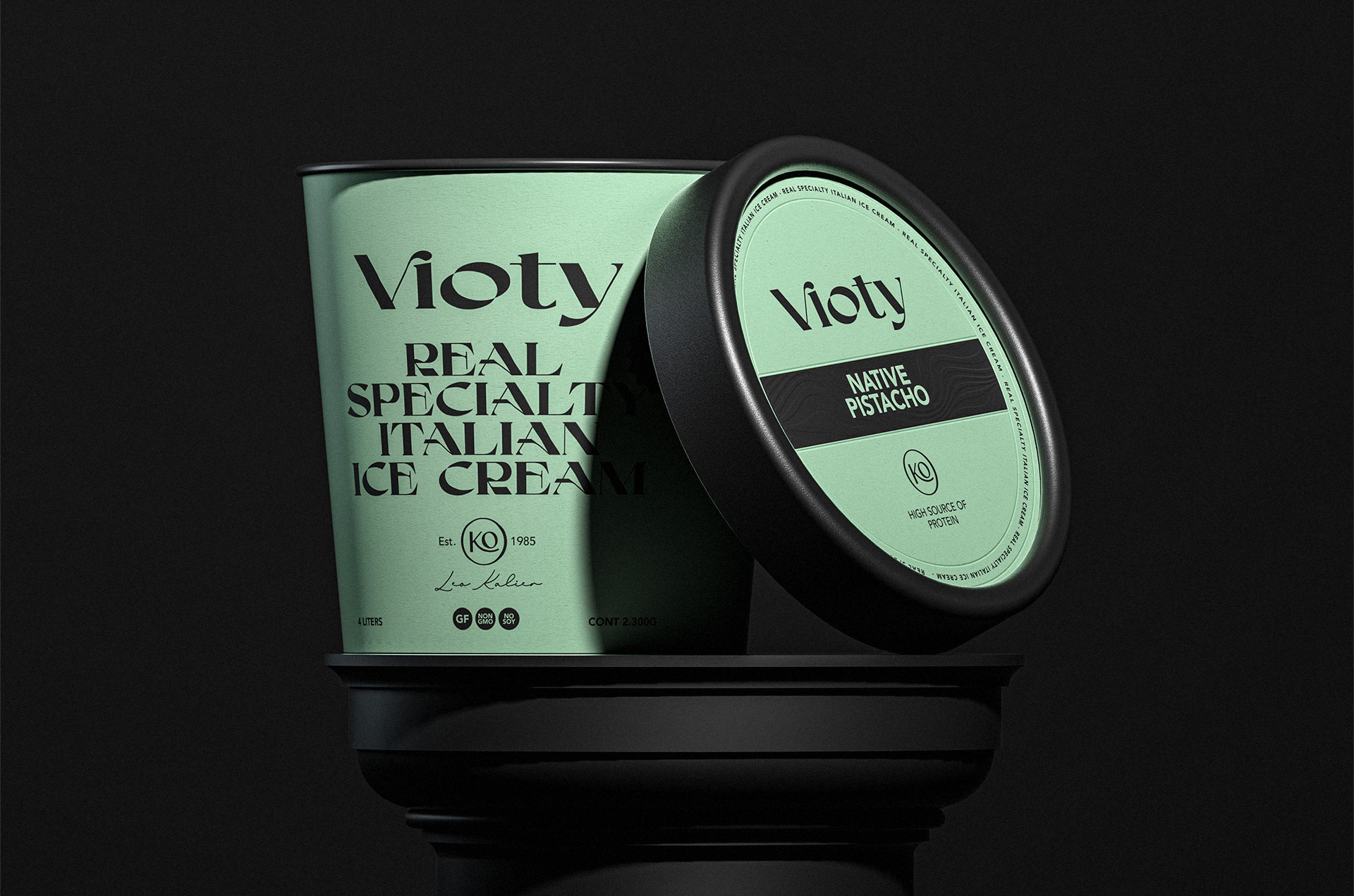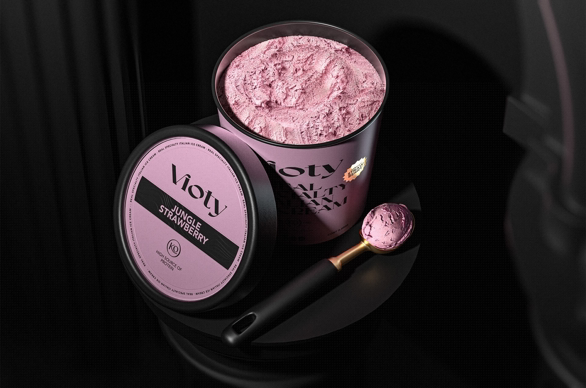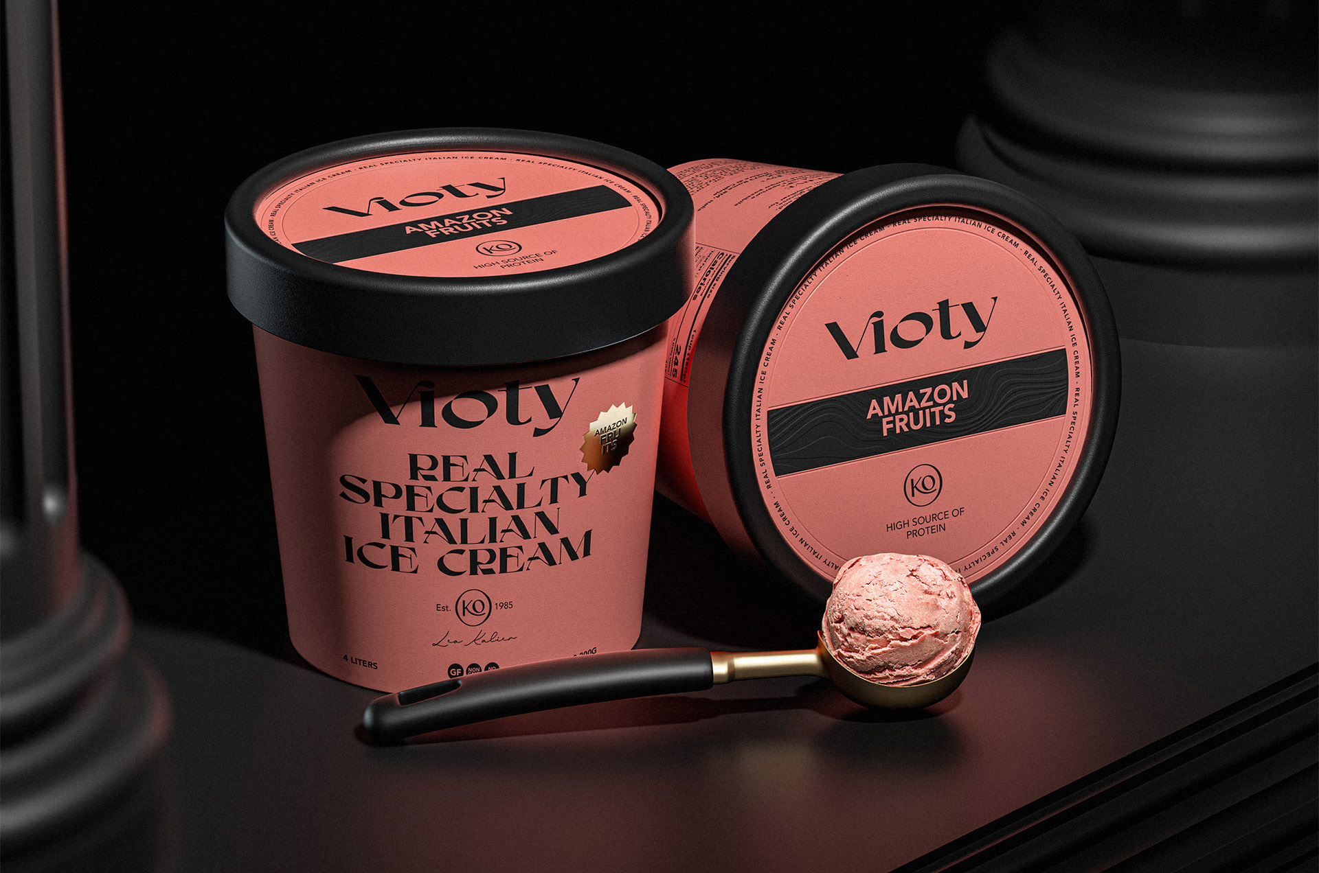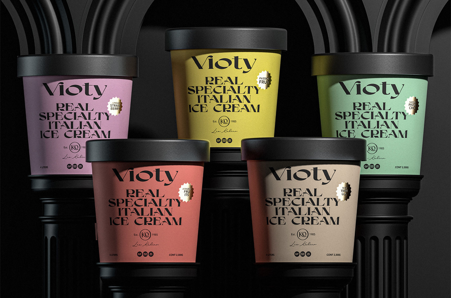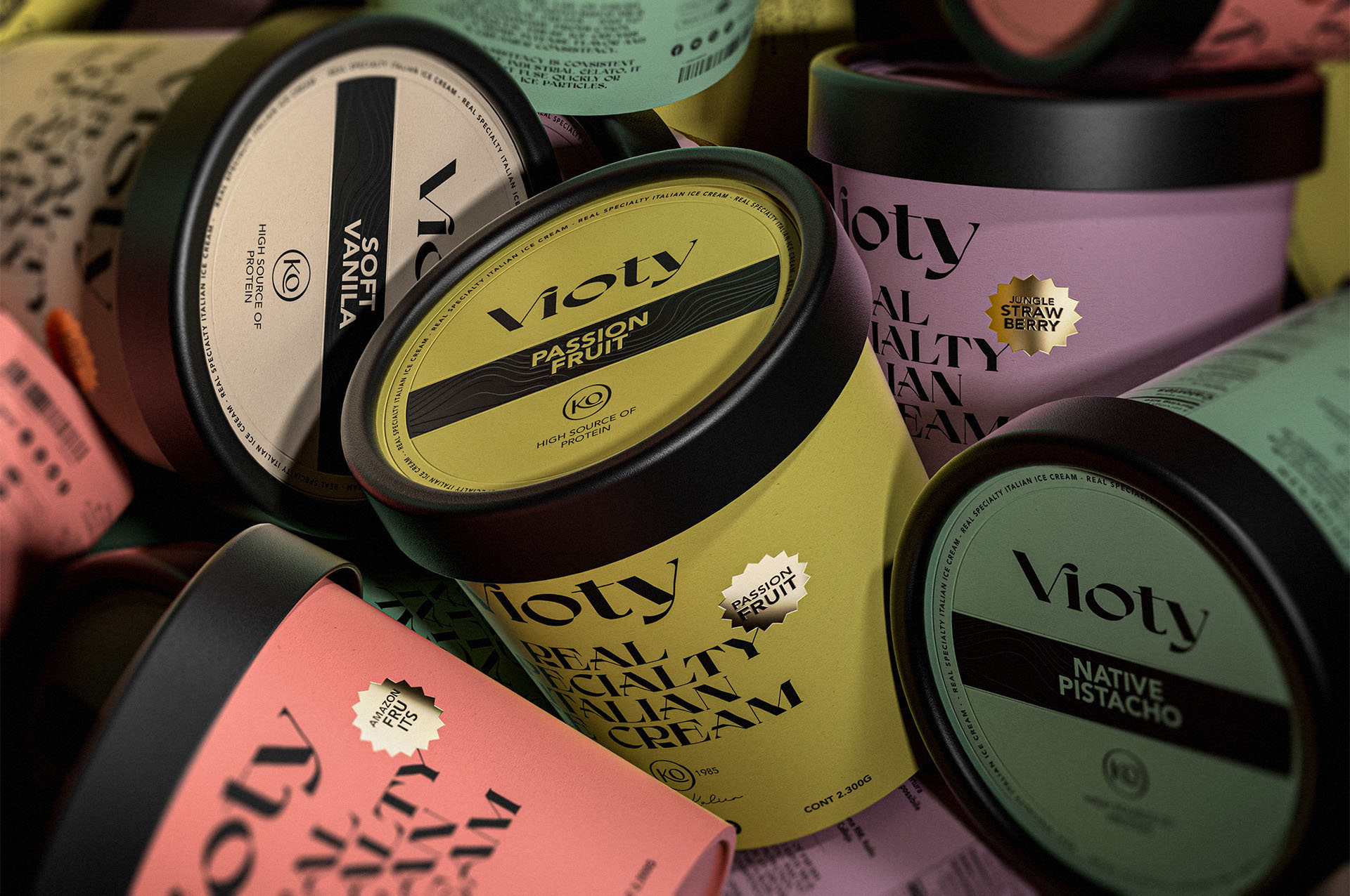 我們的工作包括為基于手工和更天然冰淇淋的產品創建品牌及其包裝設計,并專注于將我們的身體作為生命容器的新意識;從這個詞 Vida 衍生出 Vioty 品牌的名稱,然后將其轉移到由非常富有表現力和經典字體組成的標志上,以紀念意大利冰淇淋的大師和制造商,此后包裝采用我們通過非常醒目的純色和黑色大文字加強了這一概念,以形成強烈的對比,并輔以金色的小細節,從而實現經典而精美的包裝。