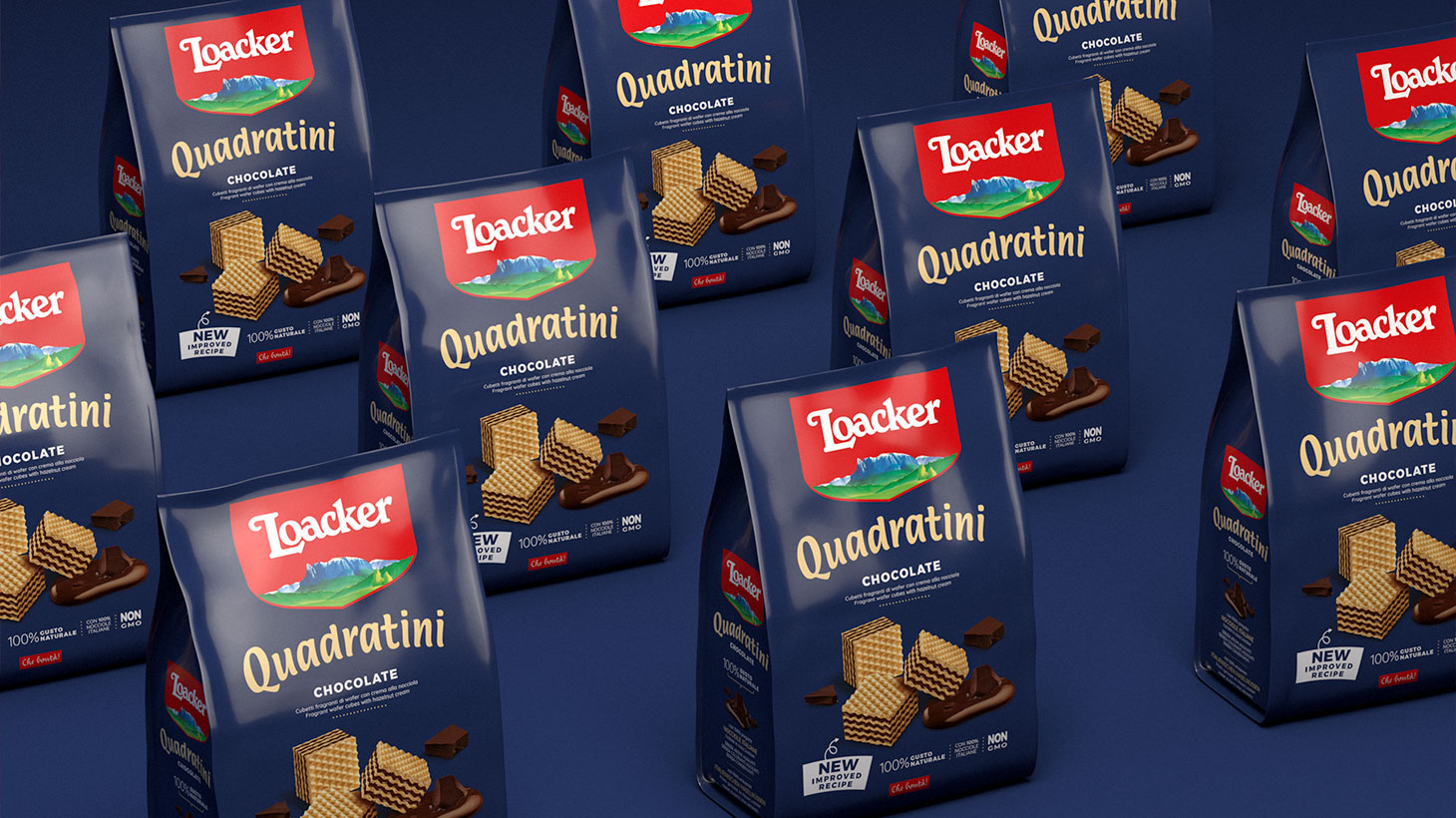 對大約 18,000 名消費者進行的研究表明,新標志和新包裝設計賦予所有 Loacker 產品 20% 的每個系列的可見性和可識別性。所有圖像均由 +Luce 工作室實現。