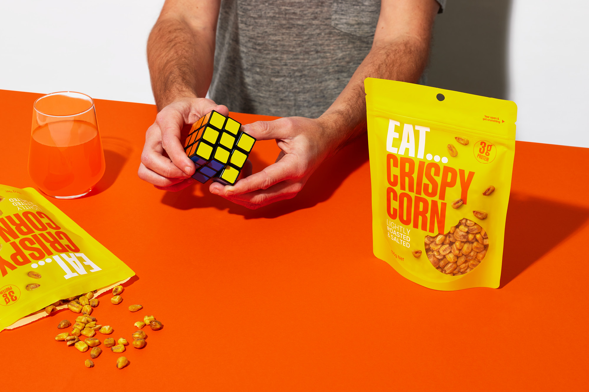 產品包裝設計主要面向精明的千禧一代和 X 世代,他們渴望以一種直接、嚴肅的方式享受新的食物體驗和健康的零食方式。他們不想要任何序言或序言,直接進入正題!我們的設計靈感來自對烤食材超大松脆感的洞察——這些絕對是小尺寸,但帶有超大的咸味松脆感。一個毫無歉意的明亮、活潑的調色板與大而大膽的排版相結合,形成了一種幾乎在零售貨架上大喊大叫的明亮個性。