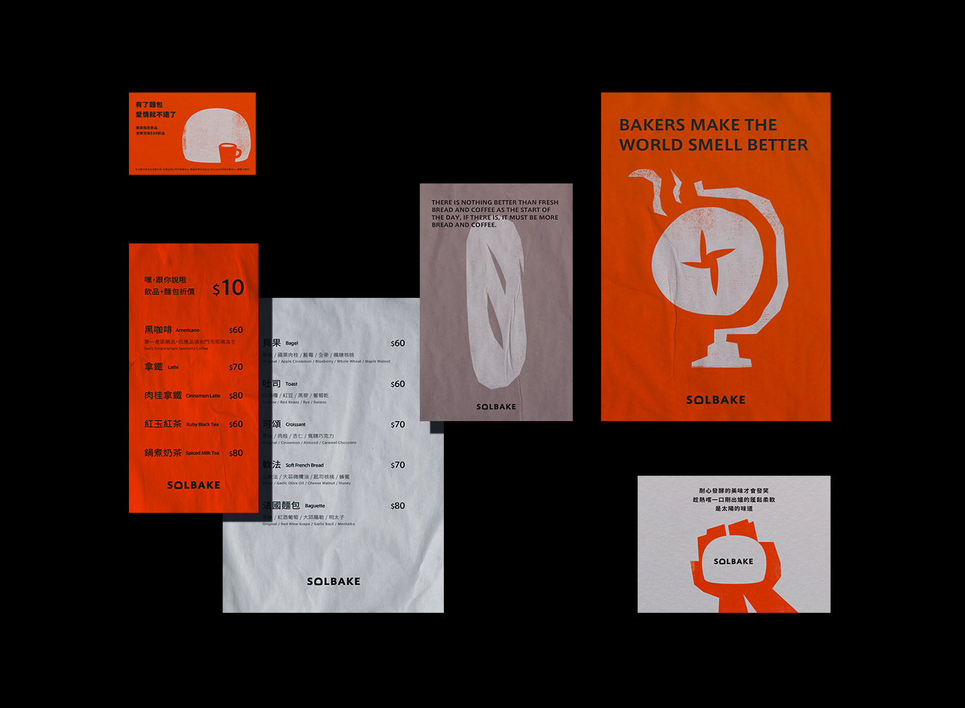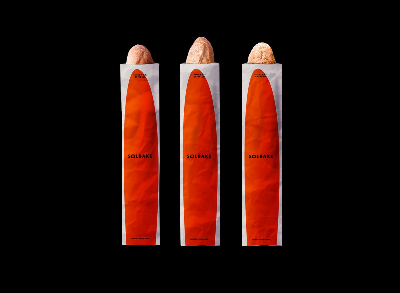 品牌標識的配色方案以橙色為代表,象征著陽光的溫暖和面包酵母的活力。希望消費者能感受到每一條面包都像剛出爐的太陽,新鮮、溫暖、充滿能量,照亮你的生活。好吃的東西總能讓人開心。我希望我們能秉持這一理念,與每一位喜歡 Solbake 的消費者分享美食。