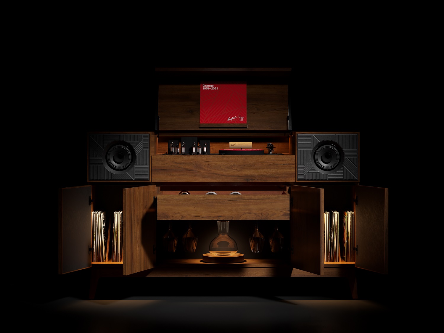 僅限 7 臺 1950 年代風格的 Grange 70 周年限量版電唱機控制臺可供購買。他們將葡萄酒和音樂融合在豪華版的手工制作家具中,為 Grange 愛好者和美酒、音樂和設計愛好者提供獨家體驗。