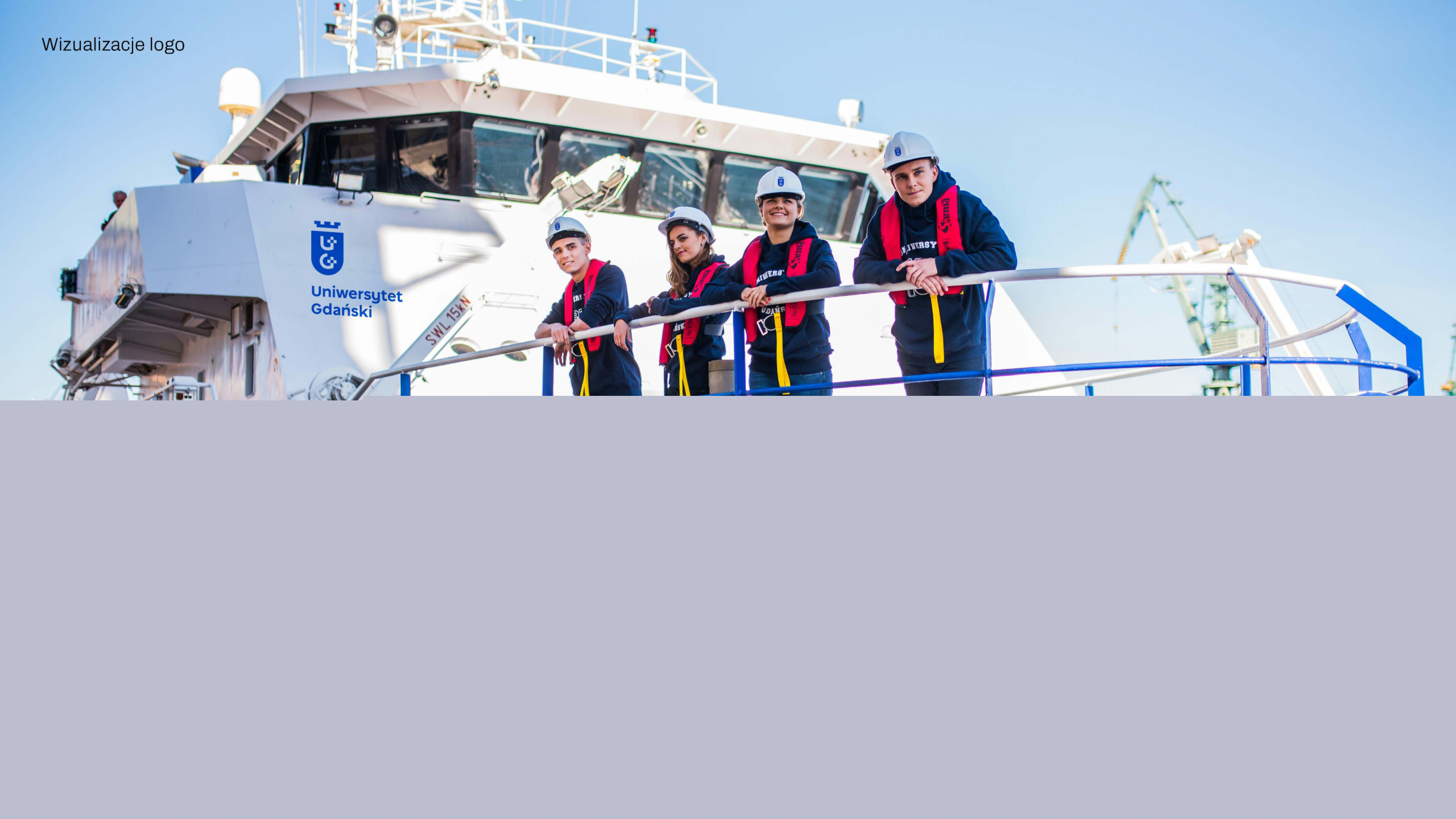 校徽標志設計的想法一方面是與格但斯克市的紋章徽章有明顯的關聯性,另一方面是不太復雜的圖章,以便即使在小尺寸和跨各種媒體和應用程序。在創作中,新標志設計也能傳達出海洋特征也很重要。