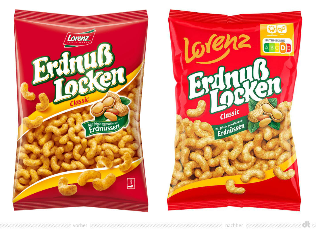 品牌包裝設(shè)計(jì)的首批產(chǎn)品,例如“Erdnu?Locken”(上圖),目前正在市場上推出。整個(gè)范圍將逐漸切換。Nutri-Score也是更改后的