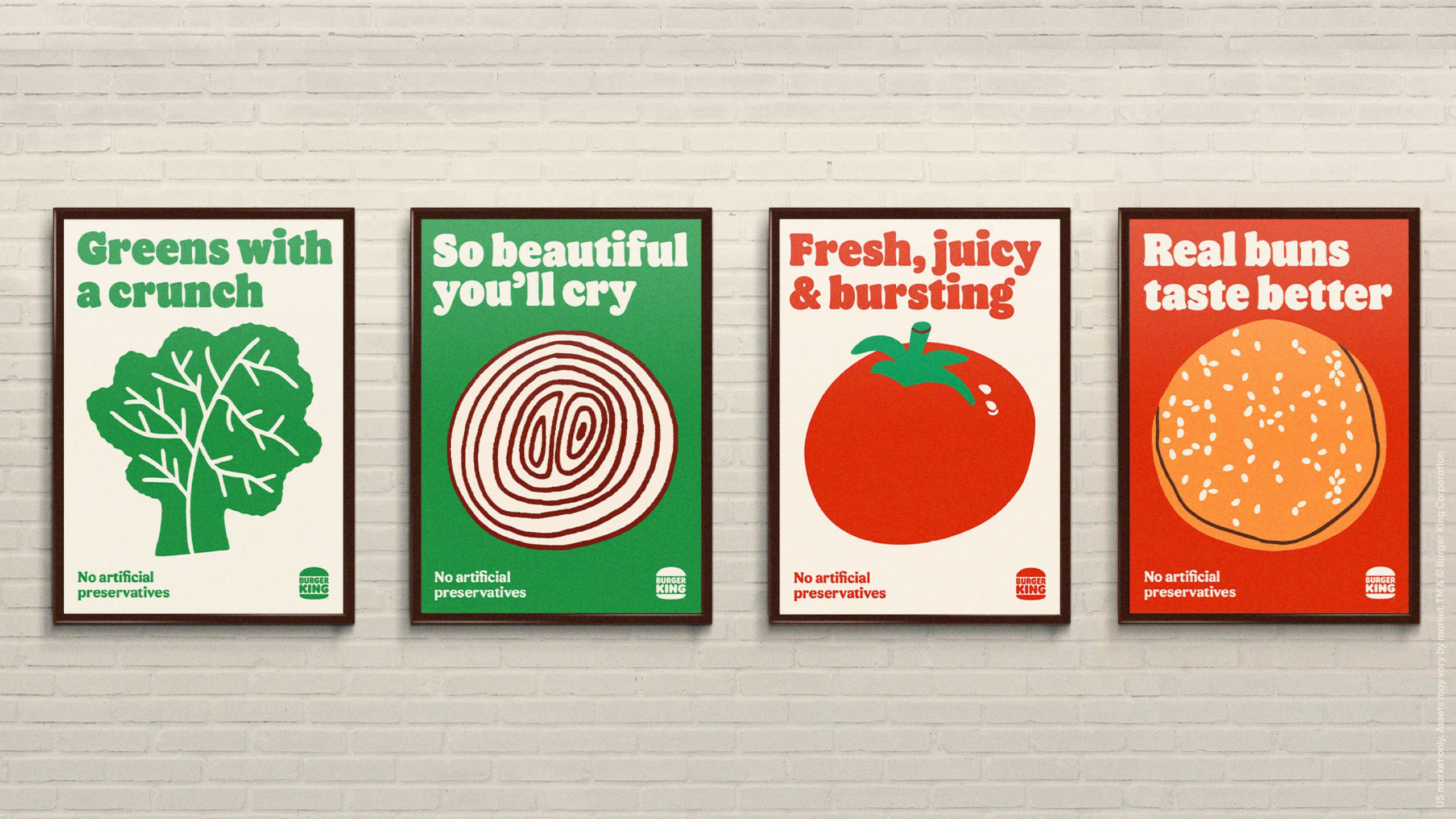 漢堡王一直代表著優(yōu)質(zhì),新鮮和正宗的食物。但是,以前的品牌標(biāo)識不能像Everke所說的那樣傳達(dá)這一點(diǎn)。因此,經(jīng)過20多年的努力,以前的徽標(biāo)被放棄了,同時(shí)修改了整個(gè)品牌,以將菜肴的味道和品質(zhì)轉(zhuǎn)化成吸引人的設(shè)計(jì)語言。